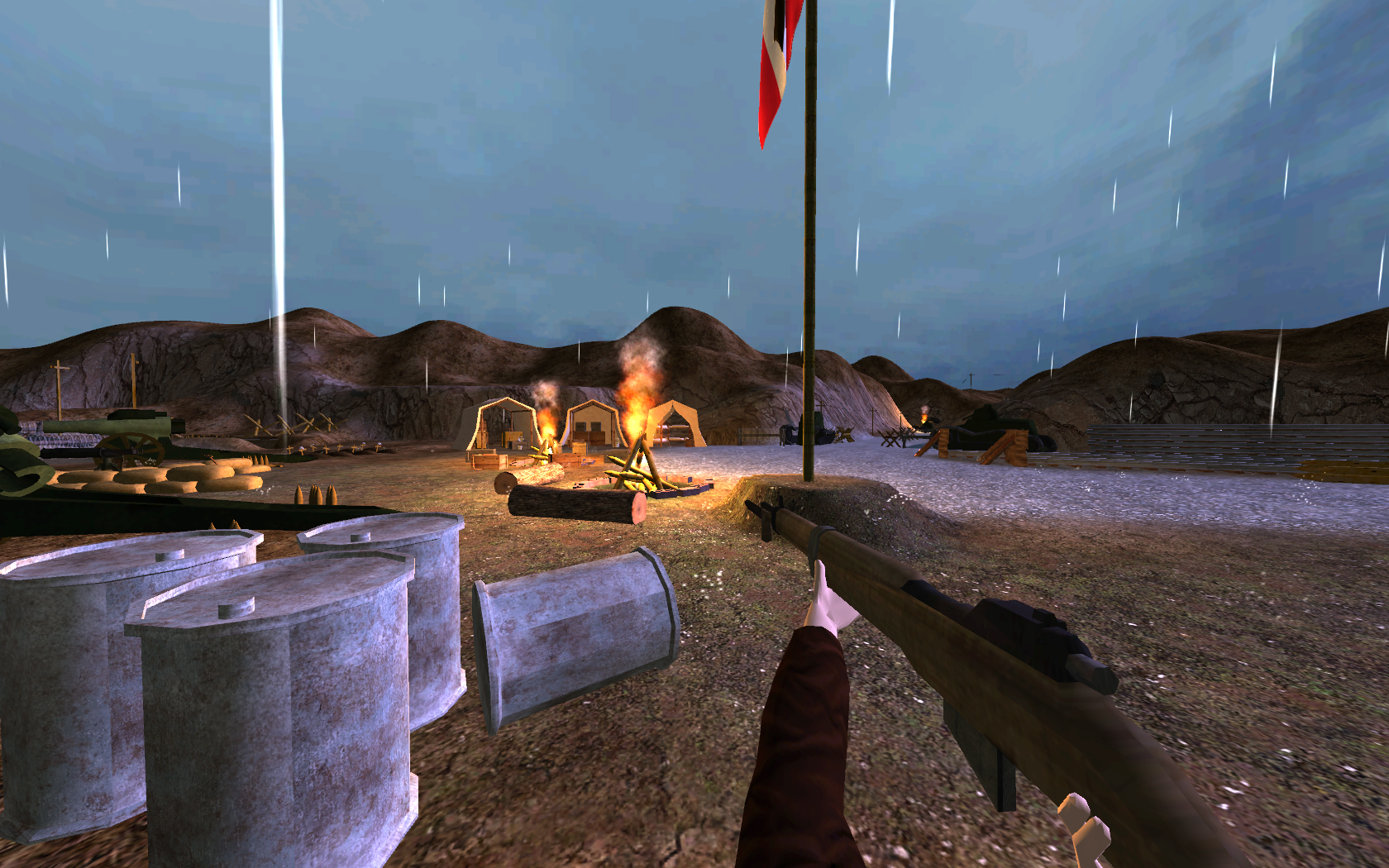 The player explores a derelict and abandoned battlefield, trying to find his way through the destruction.