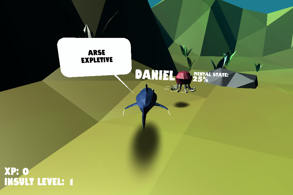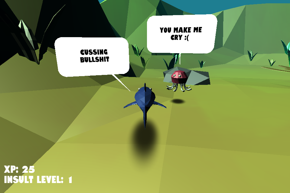 Sharkasm was made in 48 hours for Sharkjam, which I also hosted. You play a shark and can insult other sealife with procedurally generated insults.