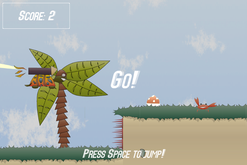You play as Trevor, as tortoise that wants to fly by strapping himself to a rocket. You need to avoid obstacles and get as far as possible.