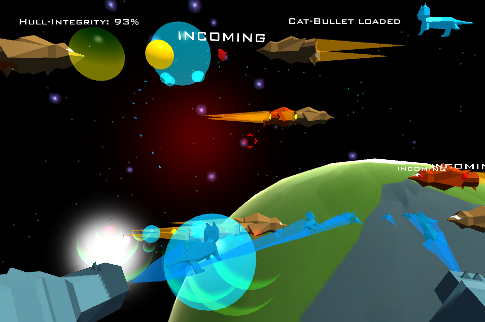 You defend the Ultra-Kitten homeworld from the invading penguin-fleet by shooting them with cat-missiles.