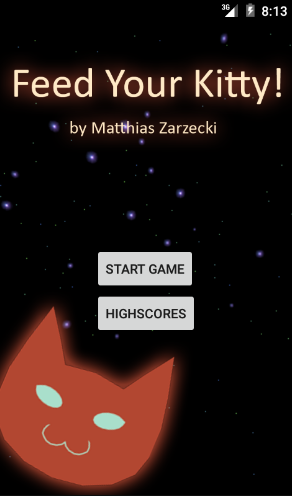 You have to choose what food to feed your kitty, and it reacts pleased or sad. Afterwards highscores are saved in a local database.
