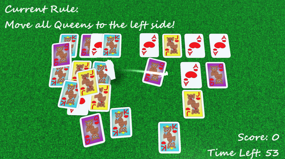 You play Bear-Solitaire, the rules of which change every few seconds.